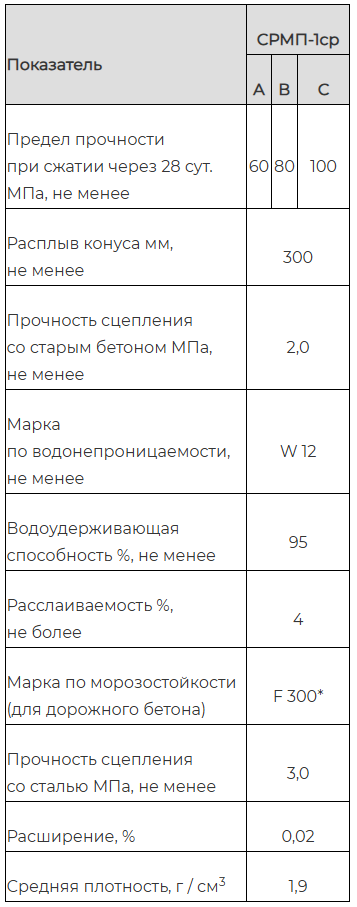 отсутствие усадки и высокая усадочная трещиностойкость;
